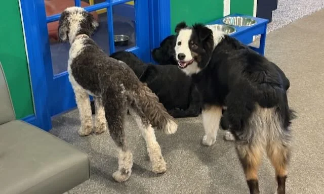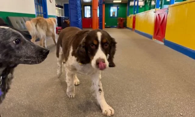 No more crate guilt—your dog deserves space to run, play, and just be a dog! At our 5,000 sq. ft. indoor/outdoor free-roam facility, pups enjoy open playrooms, cozy hangout spots with TVs and couches, and soft rubber flooring perfect for all-day fun. Luxury suites are only for nap time and sleeping overnight. With Weston, our treasured pup keeping the fun going all day long, you can expect a tail-wagging, tuckered-out pup at pickup time!