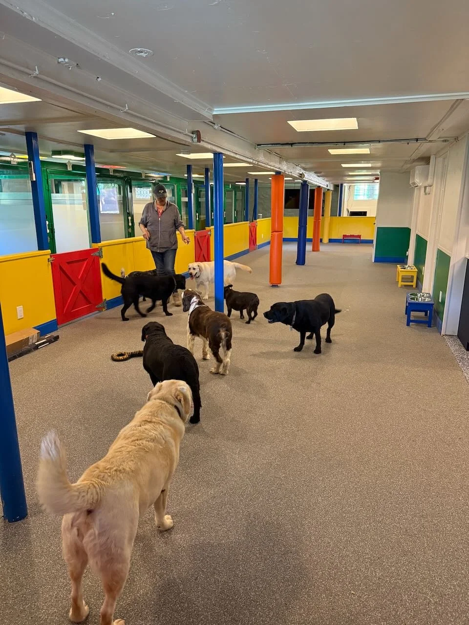 At our dog care facility, every detail has been thoughtfully designed to ensure comfort, safety, and joy for your pet. Starting from a clean slate, we built this space around the highest standards in the industry—eliminating cages entirely and replacing them with true dog suites that reduce stress and promote relaxation. With larger-than-standard “suites,” soft rubber flooring, and dedicated group playrooms, dogs can socialize, rest, and play in a secure, enriching environment. Backed by 17 years of hands-on experience, we know how to match dogs for safe socialization and provide 24/7 on-site care. From climate-controlled spaces to top-tier security, everything we do is rooted in safety, transparency, and love for animals.!