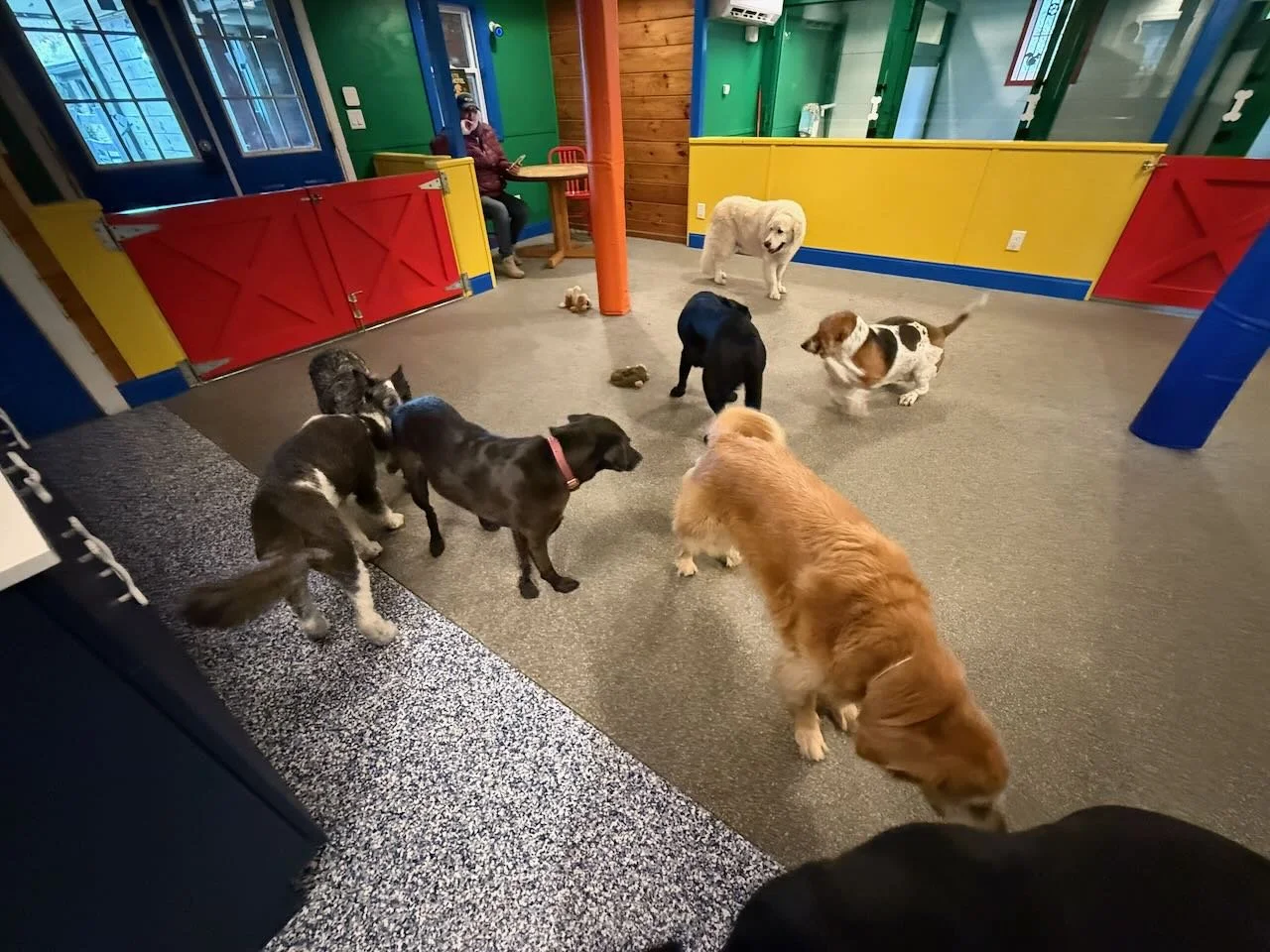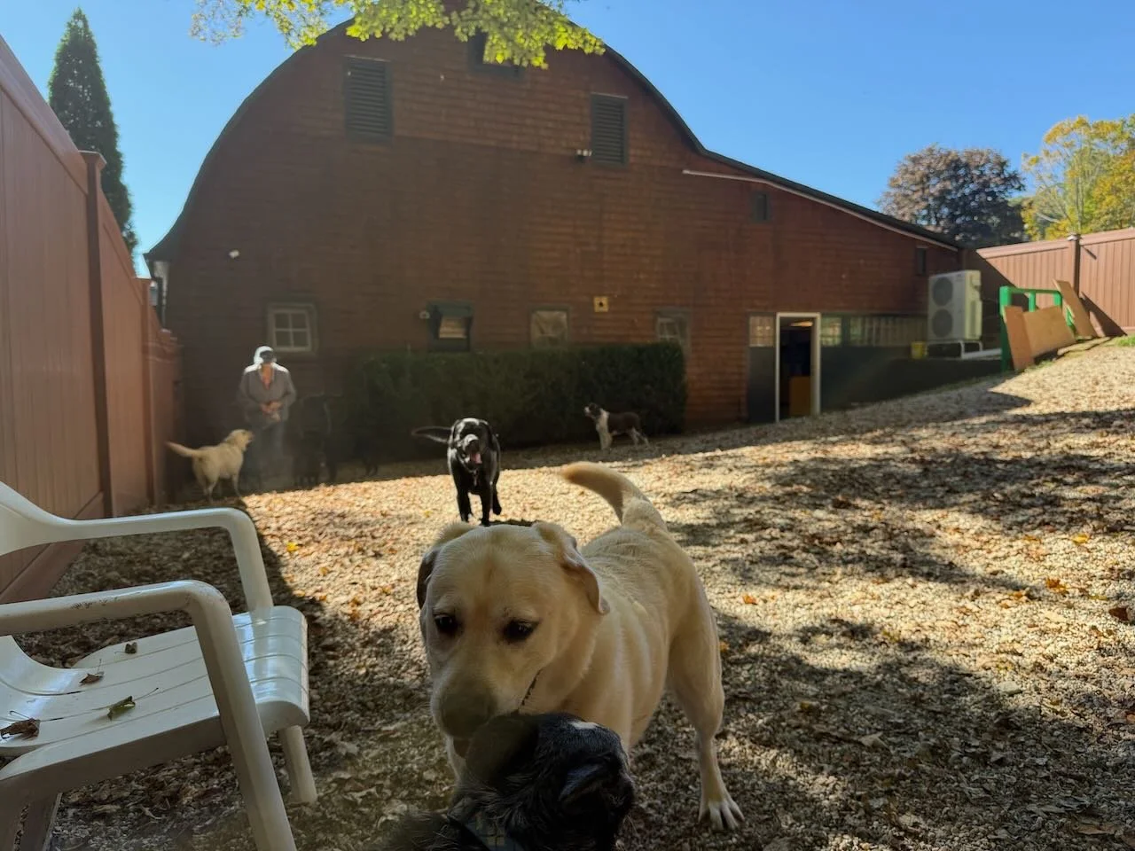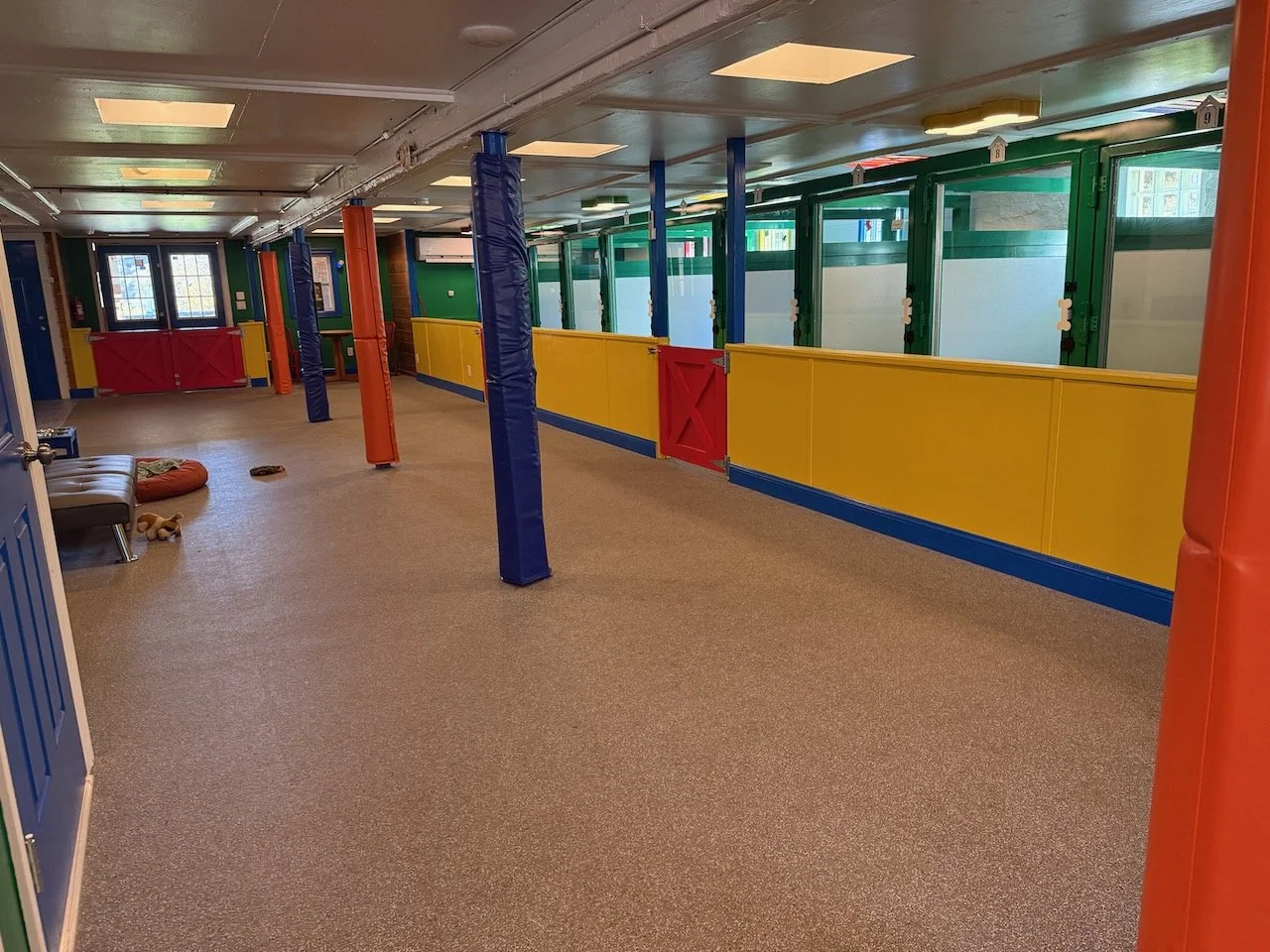 At our dog care facility, every detail has been thoughtfully designed to ensure comfort, safety, and joy for your pet. Starting from a clean slate, we built this space around the highest standards in the industry—eliminating cages entirely and replacing them with true dog suites that reduce stress and promote relaxation. With larger-than-standard “suites,” soft rubber flooring, and dedicated group playrooms, dogs can socialize, rest, and play in a secure, enriching environment. Backed by 17 years of hands-on experience, we know how to match dogs for safe socialization and provide 24/7 on-site care. From climate-controlled spaces to top-tier security, everything we do is rooted in safety, transparency, and love for animals.