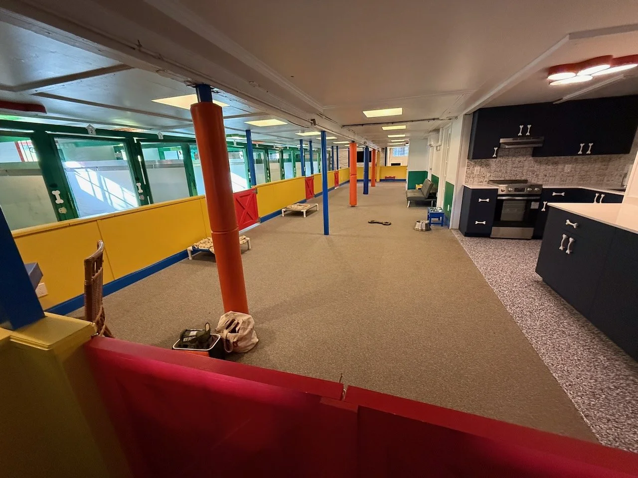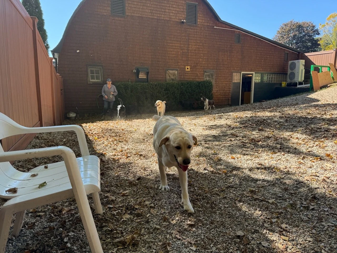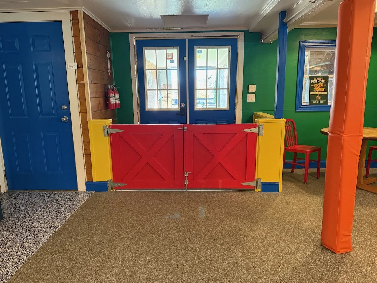 At our dog care facility, every detail has been thoughtfully designed to ensure comfort, safety, and joy for your pet. Starting from a clean slate, we built this space around the highest standards in the industry—eliminating cages entirely and replacing them with true dog suites that reduce stress and promote relaxation. With larger-than-standard “suites,” soft rubber flooring, and dedicated group playrooms, dogs can socialize, rest, and play in a secure, enriching environment. Backed by 17 years of hands-on experience, we know how to match dogs for safe socialization and provide 24/7 on-site care. From climate-controlled spaces to top-tier security, everything we do is rooted in safety, transparency, and love for animals.