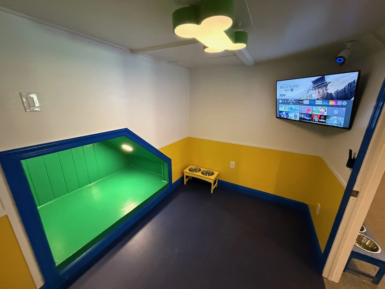 FLAT SCREEN TVS EVERYWHERE, COUCHES TO LOUNGE, GOURMET MEALS & TREATS, GROUP PLAY TIME AND CAGE -FREE! YOUR PUP WILL FEEL LIKE HE/SHE IS HOME WITH THIER BEST FRIENDS!